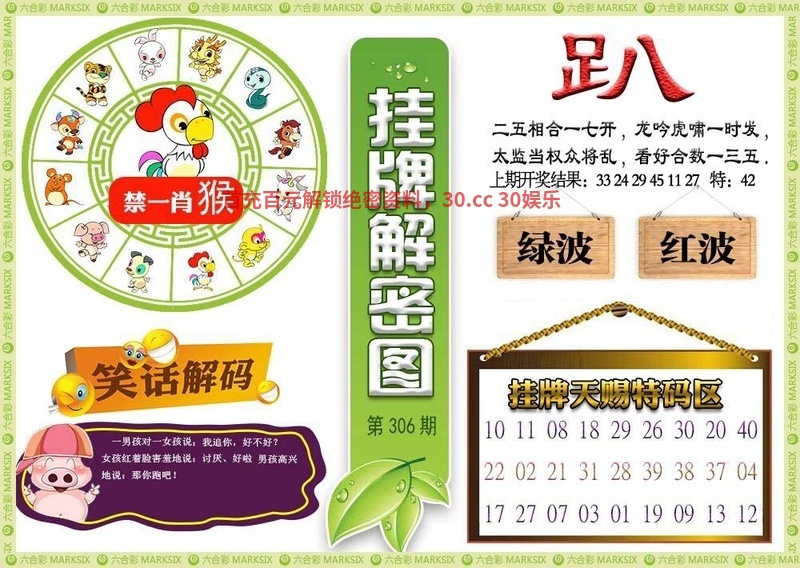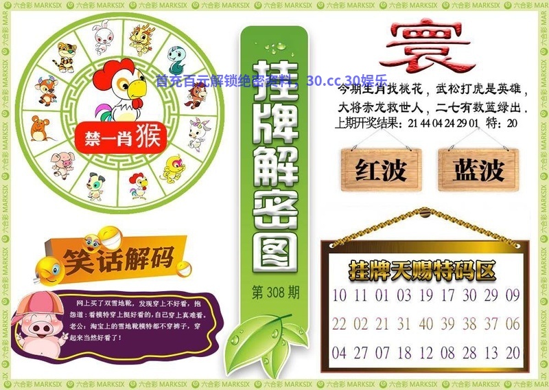 | 309期:今期猴鼠牛出特,能均汉祚三分业:开發00准。 ①猴鼠牛羊龙 ②合单+大数 本人取特都是有思路可寻,对错看天意,喷狗绕道 |